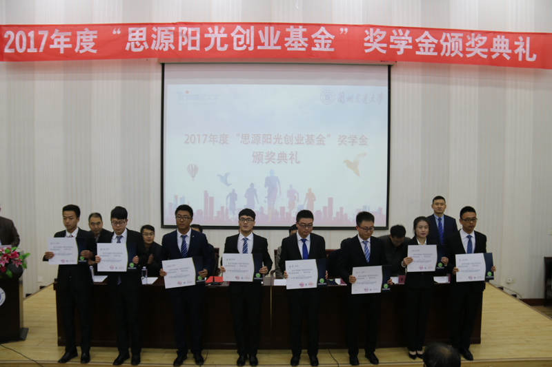 11月30日, 新能源與動力工程學院2017年度“思源陽光創(chuàng)業(yè)基金”獎學金頒獎儀式隆重舉行。蘭州交通大學副校長馬軍黨、學生工作處、招生就業(yè)處、保衛(wèi)處、團委、新能源與動力工程學院等領導出席頒獎典禮,典禮由蘭州交通大學新能源學院院長董海鷹主持,新能源與動力工程學院教師代表和相關(guān)專業(yè)學生以及獲獎學生300多人與會。