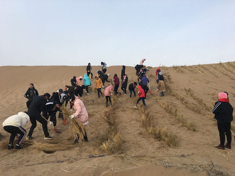 12月15日,為了響應市委、團委關于“壓沙造林”的號召,護理系組織全體教師及學生共600余人,來到長城鄉(xiāng)附近沙漠地區(qū),開展了義務壓沙活動。