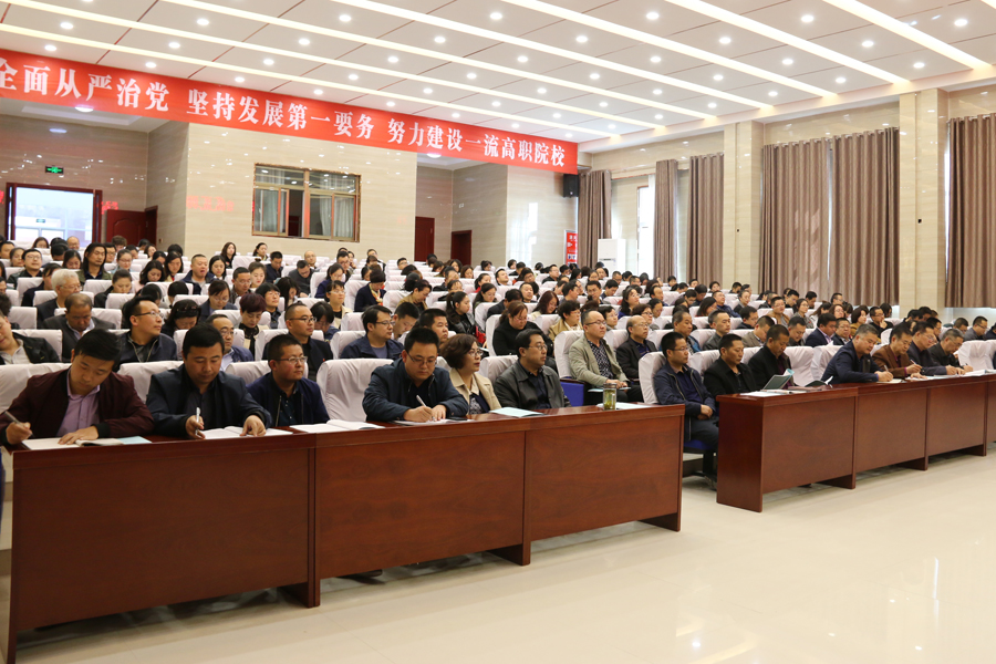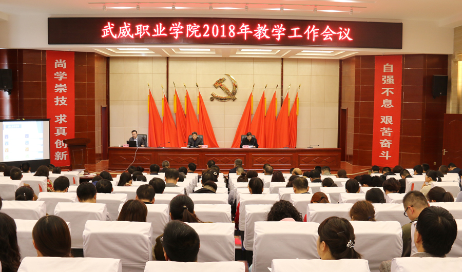 黨委副書記趙明對學院2017年教學工作做了簡要回顧與總結(jié),結(jié)合全國全省教育工作會議精神,深入分析了學院目前面臨的困難與存在的問題,從八個方面對2018年學院教學重點工作做了安排部署。一是加強思想政治建設,貫徹落實中央決策部署。學習貫徹習近平新時代中國特色社會主義思想和黨的十九大精神,貫徹落實全國教育大會精神,細化落實職業(yè)教育具體工作措施。二是深化改革,增強辦學活力。堅持依法治校,繼續(xù)完善內(nèi)部治理體系,加強學術(shù)委員會、職稱評審委員會建設,健全管理體系和運行機制,大力推進人才培養(yǎng)模式改革和招生考試制度改革。三是強化內(nèi)涵,全力推進優(yōu)質(zhì)高職院校建設。抓實推進優(yōu)質(zhì)高職院校6個模塊19個項目94項任務312條子任務的建設工作,加強內(nèi)部協(xié)調(diào),全力推進。加強專業(yè)內(nèi)涵建設和實踐教學內(nèi)涵建設,建立一批優(yōu)質(zhì)特色專業(yè)和一批高水平生產(chǎn)性實訓基地;積極開展創(chuàng)新創(chuàng)業(yè)教育實踐活動,加大社會培訓力度,積極探索開展國際合作與交流;加強智慧校園和校園文化建設。四是優(yōu)化結(jié)構(gòu),全力打造一批高水平優(yōu)質(zhì)特色專業(yè)。利用直屬附屬醫(yī)院、校辦企業(yè)武威泰豐新能源有限責任、甘肅(武威)國際陸港和武威保稅物流中心等優(yōu)勢,加快重點專業(yè)建設力度,打造3~5個國家級高水平優(yōu)質(zhì)特色專業(yè)。五是合作培養(yǎng),著力打造專兼結(jié)合的高水平教師隊伍。大力實施教師素質(zhì)提升工程,完善同濟大學編制的《武威職業(yè)學院師資能力提升培訓方案》,落實西安交通大學、天津職業(yè)大學簽訂的合作協(xié)議,推進教師教學發(fā)展中心建設與運行,強化專業(yè)帶頭人、新進教師、骨干教師、優(yōu)秀青年教師的培養(yǎng)力度。六是育人為本,關(guān)注學生成長成才。優(yōu)化育人環(huán)境,開足開好思想政治類、人文素養(yǎng)提升類課程,開展校內(nèi)職業(yè)技能競賽,鼓勵支持參加省級以上比賽,培養(yǎng)學生能力。七是深化產(chǎn)教融合,提升社會服務水平。充分發(fā)揮職業(yè)教育集團作用,深化“職業(yè)教育+產(chǎn)業(yè)園區(qū)+生產(chǎn)基地”的校企合作模式;提升校辦企業(yè)、直屬附屬醫(yī)院的教學服務功能;各專業(yè)要拓展產(chǎn)教融合渠道,精準施策,服務國家戰(zhàn)略。八是完善質(zhì)量保障機制,提升人才培養(yǎng)質(zhì)量。編制并逐步推行教學工作診斷與改進方案,學習實施精細化管理模式,加大教學督查力度,規(guī)范教學秩序,提高教育教學管理水平。