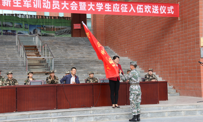 9月5日上午,武威職業(yè)學(xué)院2018級(jí)新生軍訓(xùn)動(dòng)員大會(huì)暨大學(xué)生應(yīng)征入伍歡送儀式在大學(xué)生活動(dòng)中心廣場(chǎng)舉行。學(xué)院副院長(zhǎng)王永緒、田迎春,涼州區(qū)武裝部副部長(zhǎng)韓小偉,工程防化第76旅副營(yíng)長(zhǎng)夏科銀出席儀式。承訓(xùn)單位工程防化第76旅45名戰(zhàn)士,學(xué)院學(xué)工處處長(zhǎng),各系黨總支書(shū)記、輔導(dǎo)員、班主任,2018級(jí)全體學(xué)生參加了大會(huì)。儀式由田迎春主持。