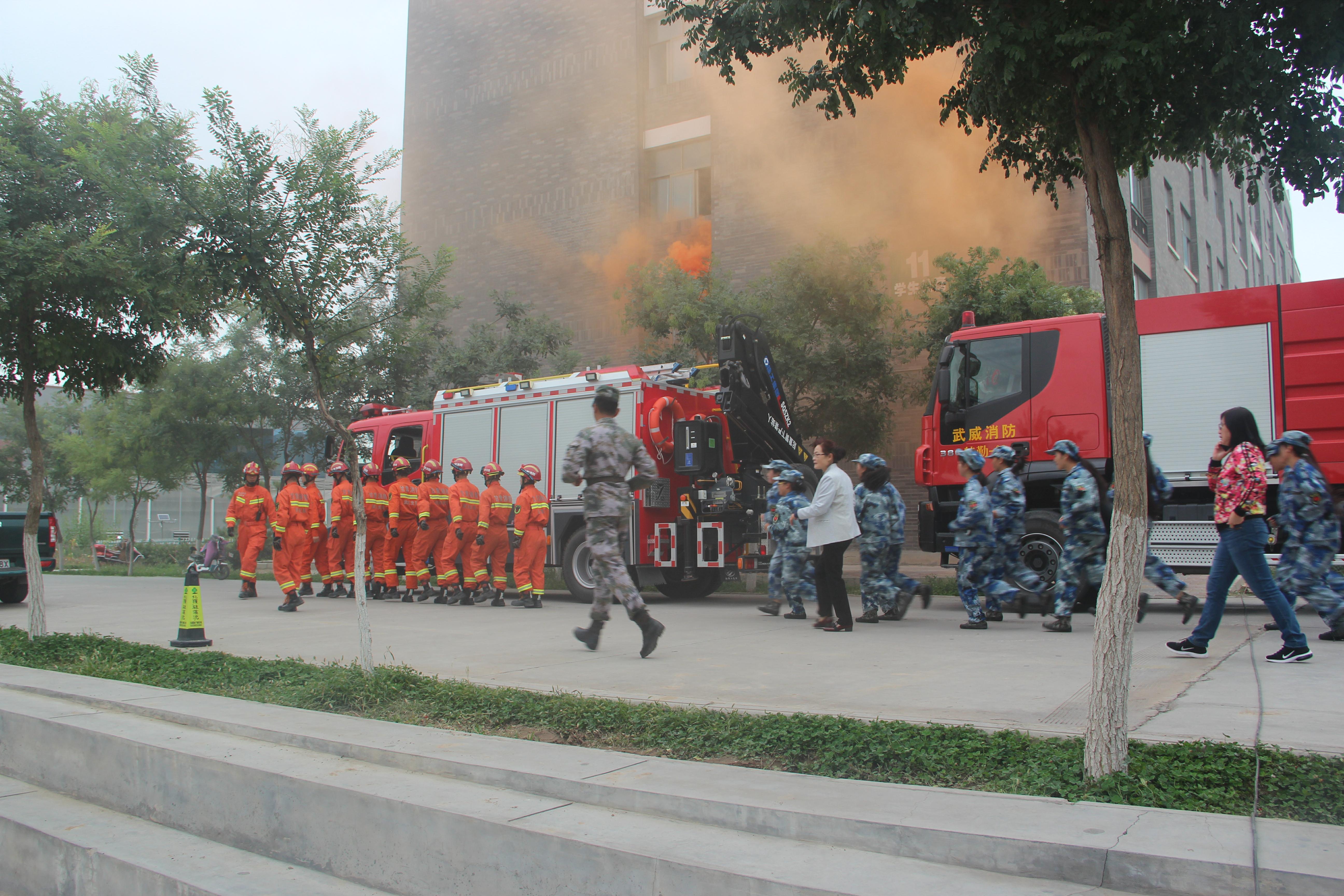 為進(jìn)一步加強(qiáng)校園安全工作,增強(qiáng)師生的消防安全意識(shí),提高師生抵御火災(zāi)和應(yīng)對緊急突發(fā)事件的能力,9月13日上午,學(xué)院聯(lián)合武威市公安消防支隊(duì)舉行了2018年秋季消防應(yīng)急疏散演練。學(xué)院副院長王永緒及相關(guān)部門、單位負(fù)責(zé)同志現(xiàn)場觀摩,約4000名2018級(jí)新生、學(xué)生管理工作人員、軍訓(xùn)教官、食堂從業(yè)人員參加了演練?。