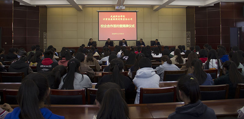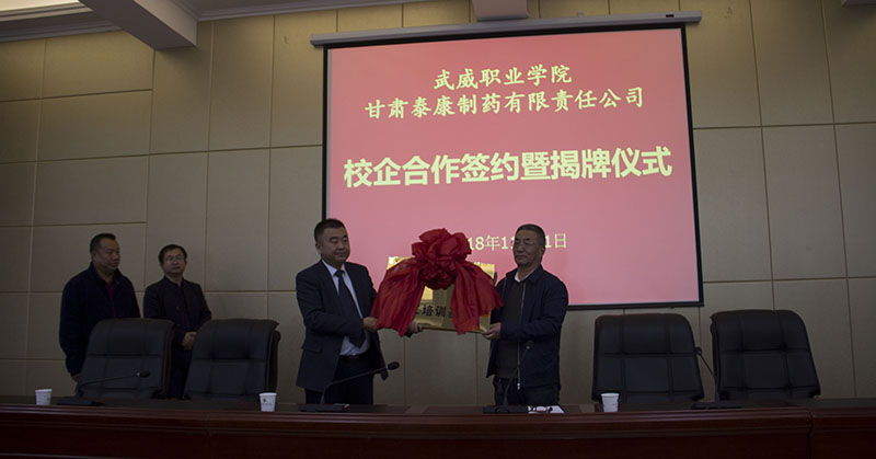 為提高人才培養(yǎng)質(zhì)量和辦學(xué)水平,加強(qiáng)校企協(xié)同育人機(jī)制建設(shè),11月1日下午,藥學(xué)系與甘肅泰康制藥有限責(zé)任公司校企合作共建“就業(yè)實(shí)習(xí)基地”簽約揭牌儀式在行樹樓北側(cè)會(huì)議室隆重舉行。甘肅泰康制藥有限責(zé)任公司投資方—北京久朝集團(tuán)產(chǎn)業(yè)中心總監(jiān)楊宏超、公司總工程師毛著鴻、財(cái)務(wù)總監(jiān)郝敏等企業(yè)領(lǐng)導(dǎo)出席本次儀式。學(xué)院教務(wù)處處長仲生仁、招生就業(yè)處處長蔡柱山、藥學(xué)系主任魏潤明、副主任楊建美、黨總支副書記單光年及藥學(xué)系160余名師生參加了此次簽約揭牌儀式。儀式由魏潤明主持。