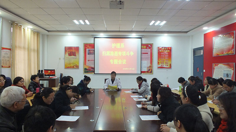 11月14日下午,護理系在明遠(yuǎn)樓103會議室召開了掃黑除惡專項斗爭專題會議,傳達(dá)學(xué)習(xí)學(xué)院關(guān)于掃黑除惡專項斗爭工作會議精神,會議由系黨總支書記張建輝主持,護理系全體教師參加了本次會議。