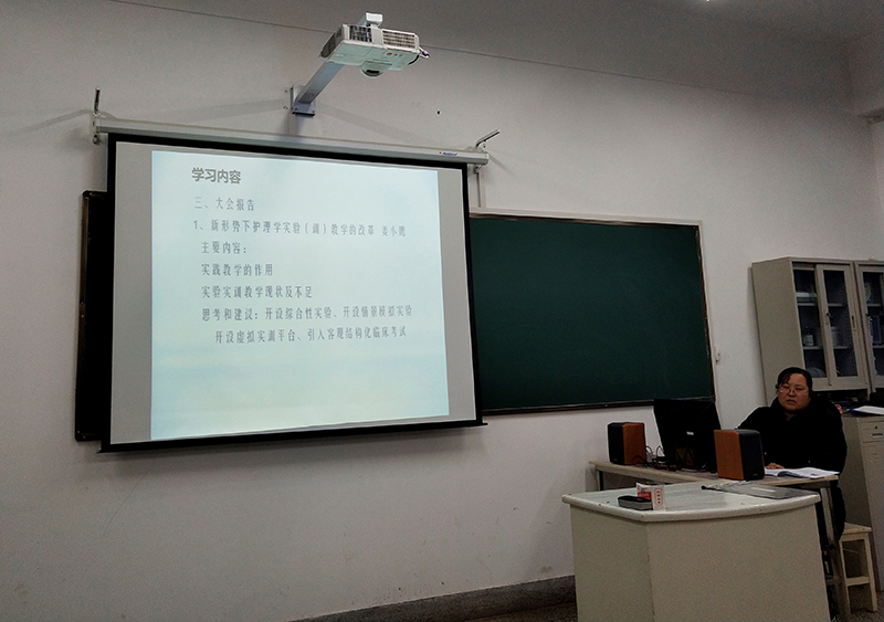 2018年11月20日,護(hù)理系組織全系教師在卓行樓308室聽取外出培訓(xùn)教師匯報(bào)會(huì)。