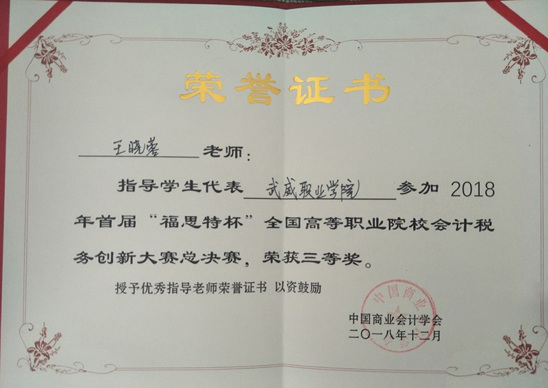 本次比賽得到學(xué)院領(lǐng)導(dǎo)、系領(lǐng)導(dǎo)的高度重視與大力支持。經(jīng)濟管理系專門成立了輔導(dǎo)小組,嚴(yán)格按照國賽要求進行實戰(zhàn)訓(xùn)練。近年來,經(jīng)濟管理系參加各級各類會計技能競賽,適時修訂會計人才培養(yǎng)方案,提升學(xué)生動手實踐能力,培養(yǎng)學(xué)生的職業(yè)核心和專業(yè)崗位能力。做到技能競賽與教學(xué)改革、人才培養(yǎng)相輔相成、相得益彰,使學(xué)生團隊合作能力、創(chuàng)新思維能力、職業(yè)能力不斷加強,實現(xiàn)了“以賽促教、以賽促學(xué)、以賽促改”的預(yù)期效果。經(jīng)濟管理系將以此為契機,不斷提高人才培養(yǎng)質(zhì)量,為學(xué)院優(yōu)質(zhì)院校建設(shè)增磚添瓦。