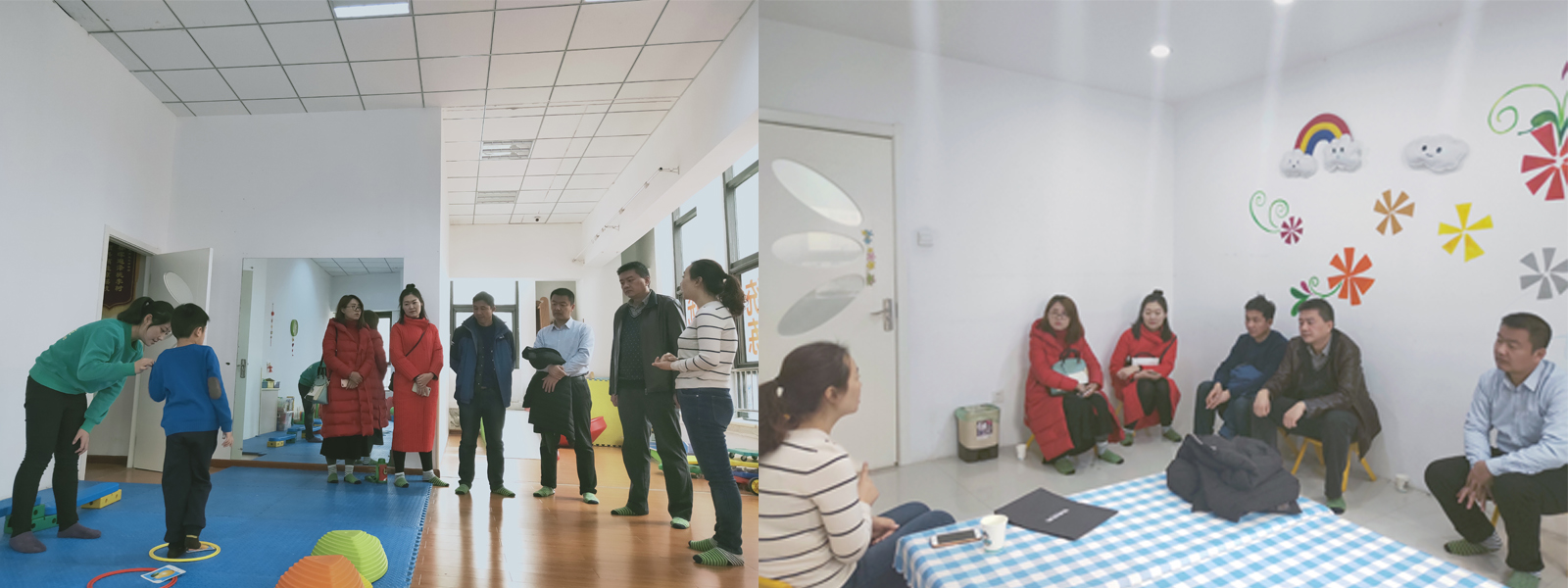 座談會后,張陽老師陪同考察組成員參觀了西安蒙洛西嬰幼滋養(yǎng)中心--優(yōu)佳示范園、金優(yōu)學能感統(tǒng)訓練中心的各個教室和實訓室。