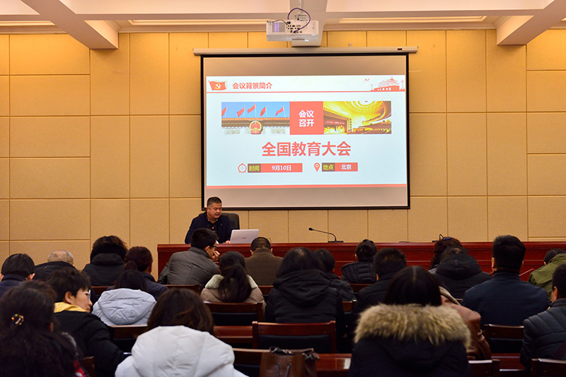 學(xué)工處處長王守云主講。他以“學(xué)為人師 行為世范 爭做‘四有’老師”為題學(xué)習(xí)了全國教育大會召開的背景、重大意義以及習(xí)近平總書記關(guān)于教育的重要論述。宣講會指出,全國教育大會是黨中央在中國特色社會主義進入新時代、全面建成小康社會進入決勝階段召開的一次劃時代、歷史性會議,時機好、規(guī)格高、影響大,在我國教育發(fā)展史上具有重要里程碑意義;習(xí)近平總書記深刻總結(jié)了黨的十八大以來我國教育事業(yè)發(fā)展取得的顯著成就,對當(dāng)前和今后一個時期教育工作作出重大部署,為加快推進教育現(xiàn)代化、建設(shè)教育強國、辦好人民滿意的教育指明了前進方向、提供了根本遵循。