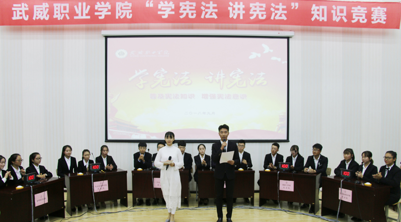 9月12日晚,院學生會在正德廳舉辦“學憲法、講憲法”知識競賽,組織人事處副處長魏全民、宣傳統(tǒng)戰(zhàn)部副部長史子新、院團委副書記高鵬堂及200多名學生代表觀看了比賽。