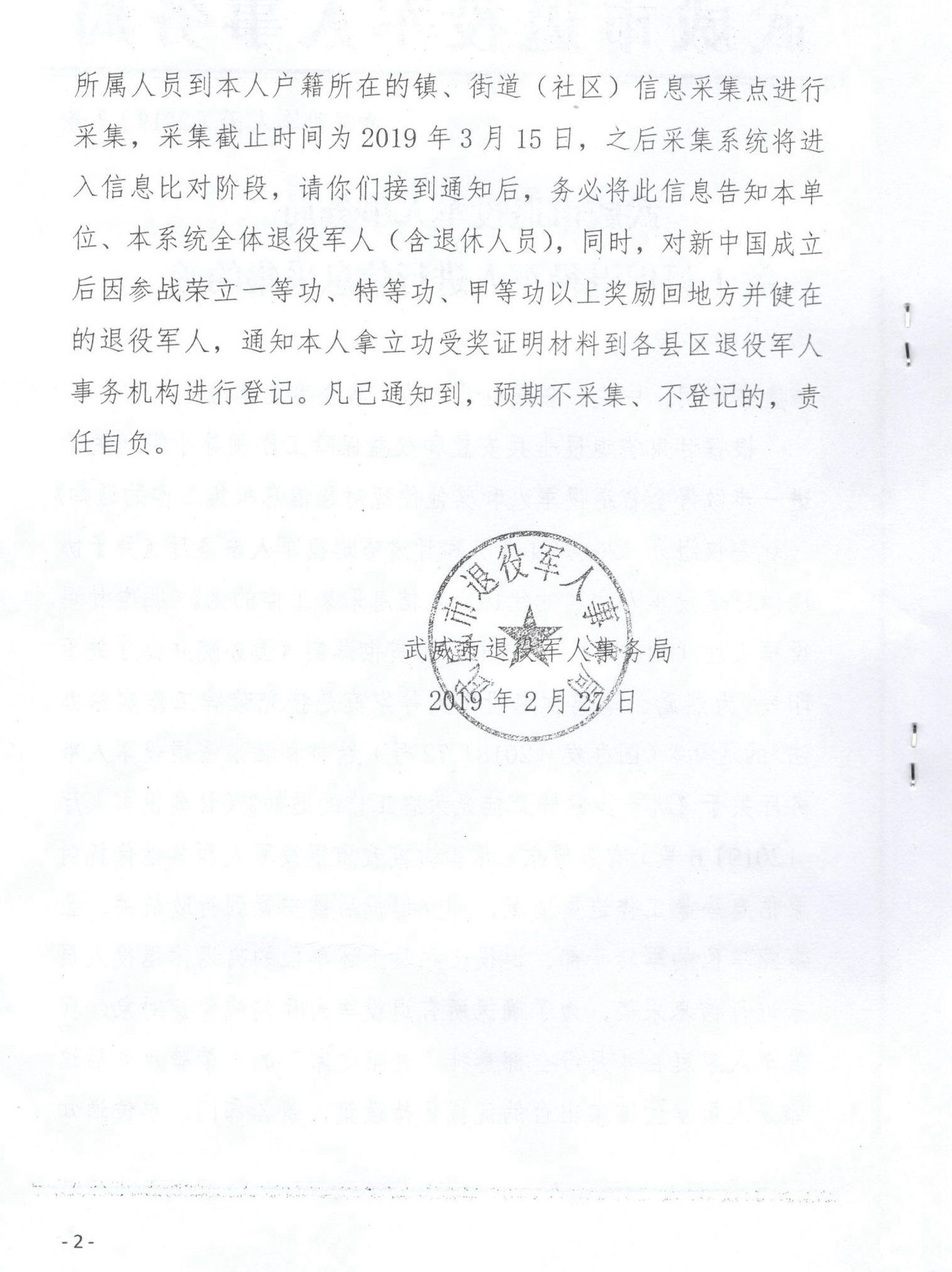 <轉(zhuǎn)發(fā)>武威市退役軍人事務(wù)局關(guān)于督促退役軍人進行信息采集的函