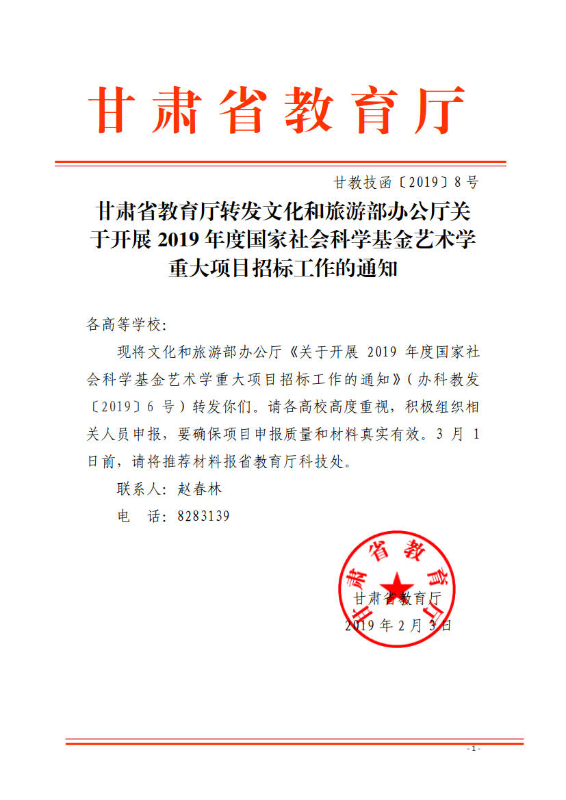 甘肅省教育廳轉(zhuǎn)發(fā)文化和旅游部辦公廳關(guān)于開展2019年度國家社會科學(xué)基金藝術(shù)學(xué)重大項目招標(biāo)工作的通知