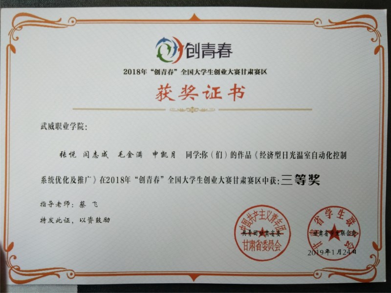 現(xiàn)代農業(yè)技術系兩件作品獲得2018年“創(chuàng)青春”全國大學生創(chuàng)業(yè)大賽甘肅賽區(qū)三等獎