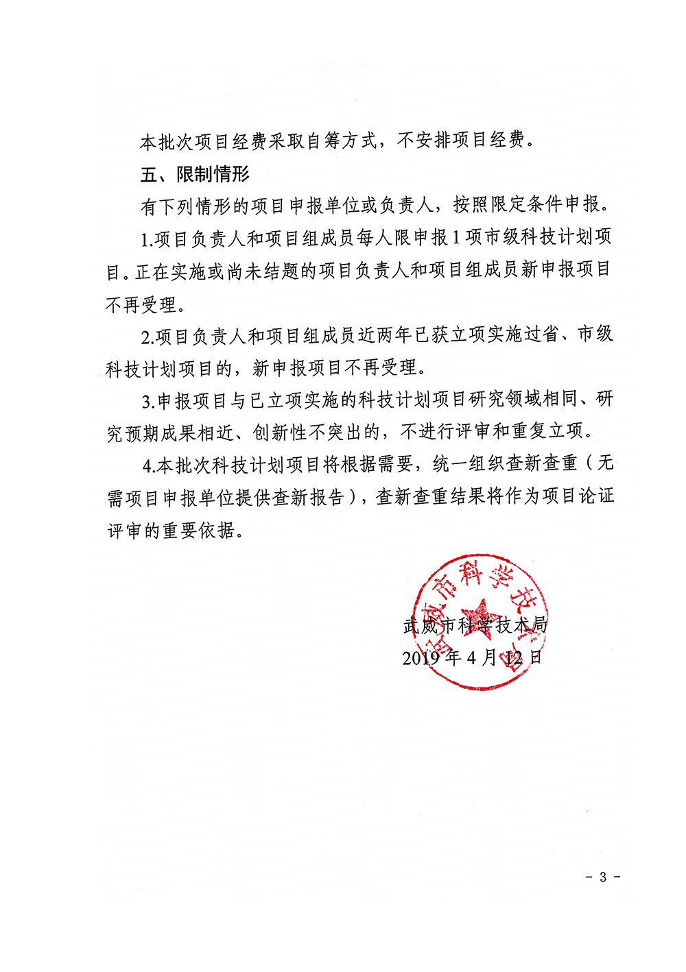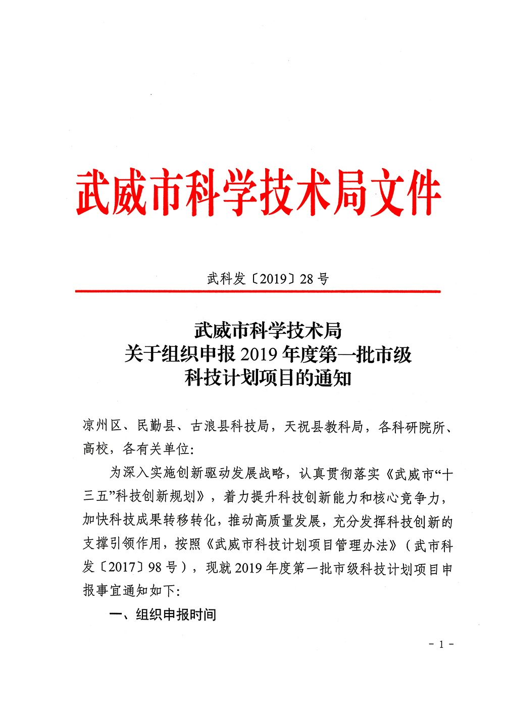轉(zhuǎn)發(fā)武威市科學(xué)技術(shù)局關(guān)于組織申報(bào)2019年度第一批市級科技計(jì)劃項(xiàng)目的通知