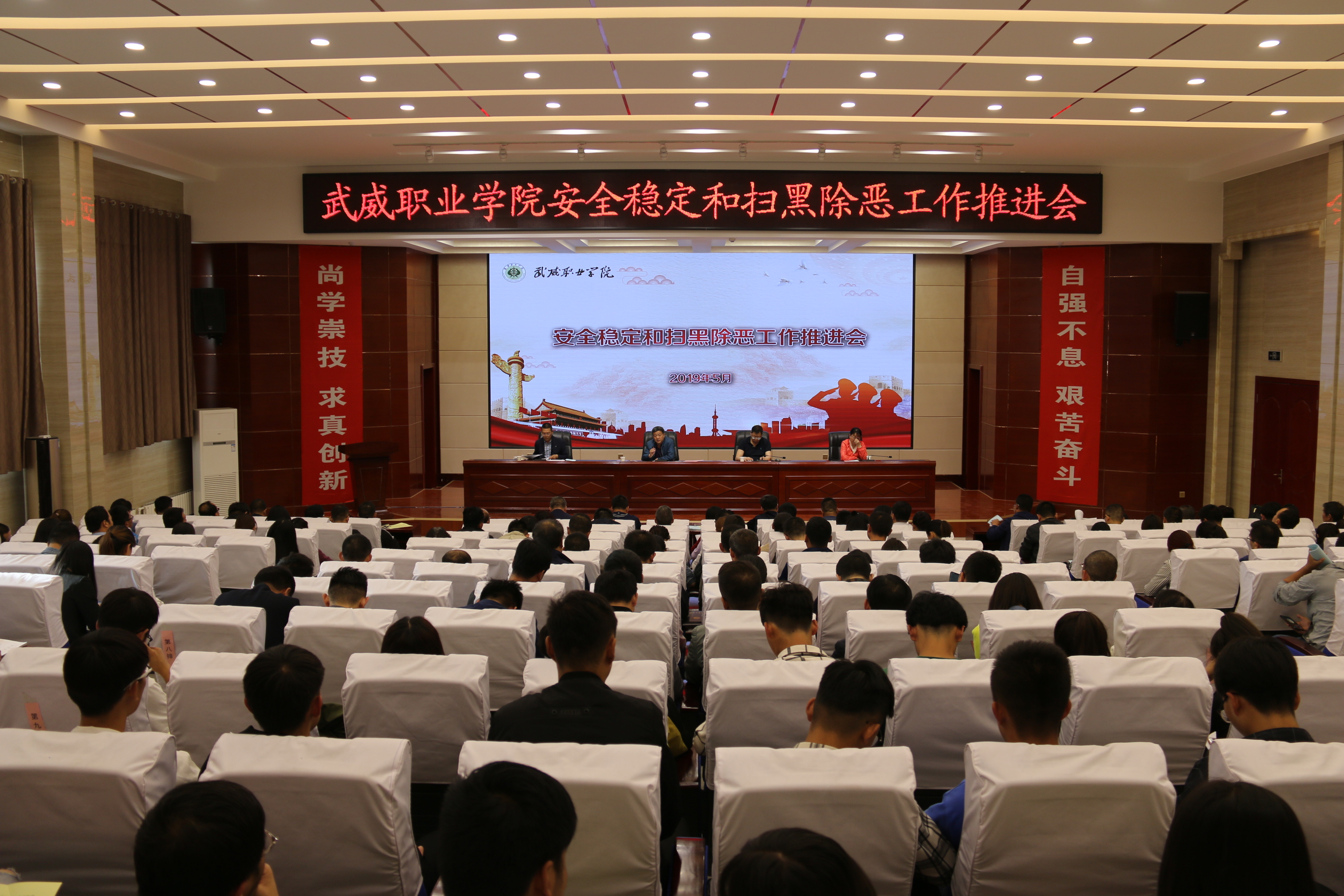 5月27日下午,學(xué)院安全穩(wěn)定和掃黑除惡工作推進(jìn)會在大學(xué)生活動中心菁英廳召開,黨委書記、院長趙明、紀(jì)委書記張富國、副院長王永緒、田迎春出席會議,各部門、單位負(fù)責(zé)人、安全信息員、各院系輔導(dǎo)員、班主任、團學(xué)干部參加了會議。會議由趙明主持。