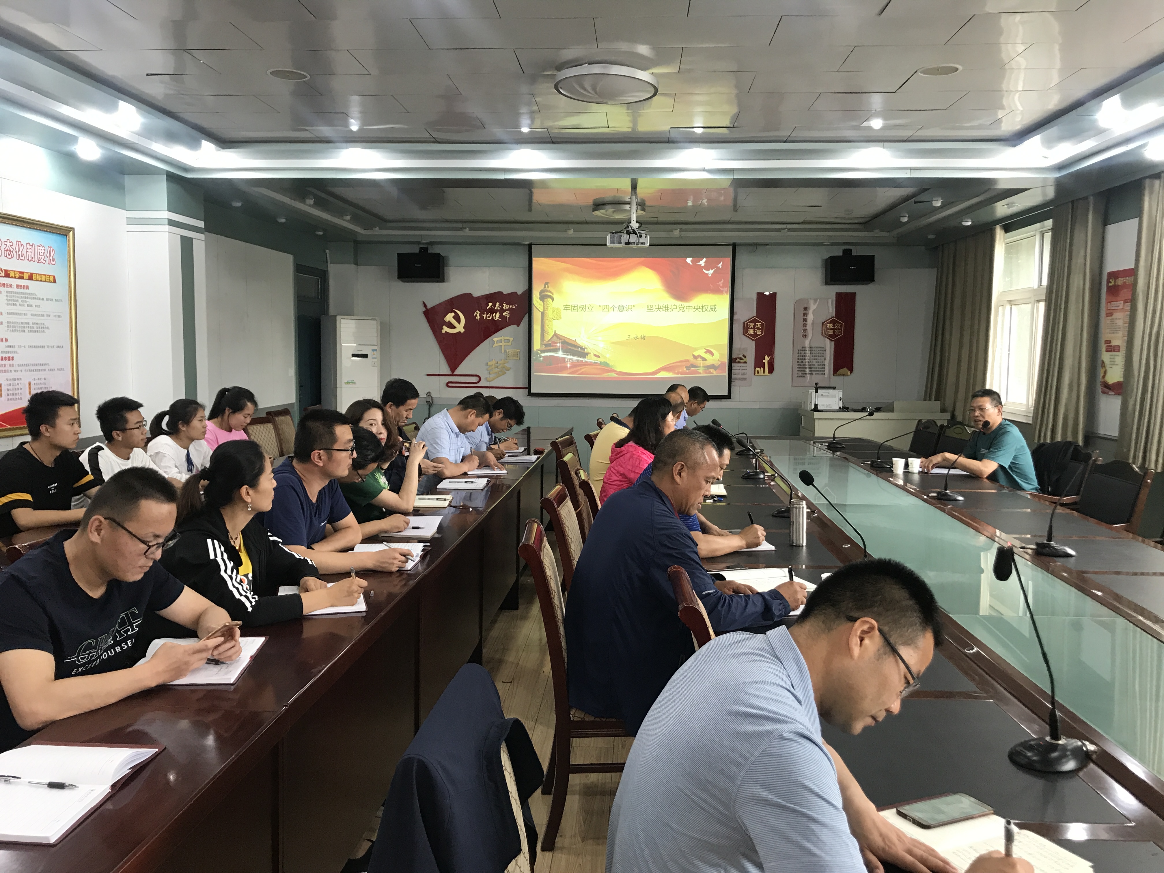 6月21日,學(xué)院黨委委員、副院長王永緒在博學(xué)樓二樓黨員活動室作了題為《牢固樹立“四個意識”·堅決維護黨中央權(quán)威》的黨課,建筑工程系、經(jīng)濟管理系、電子信息工程系全體黨員和入黨積極分子50余人聆聽了講座。