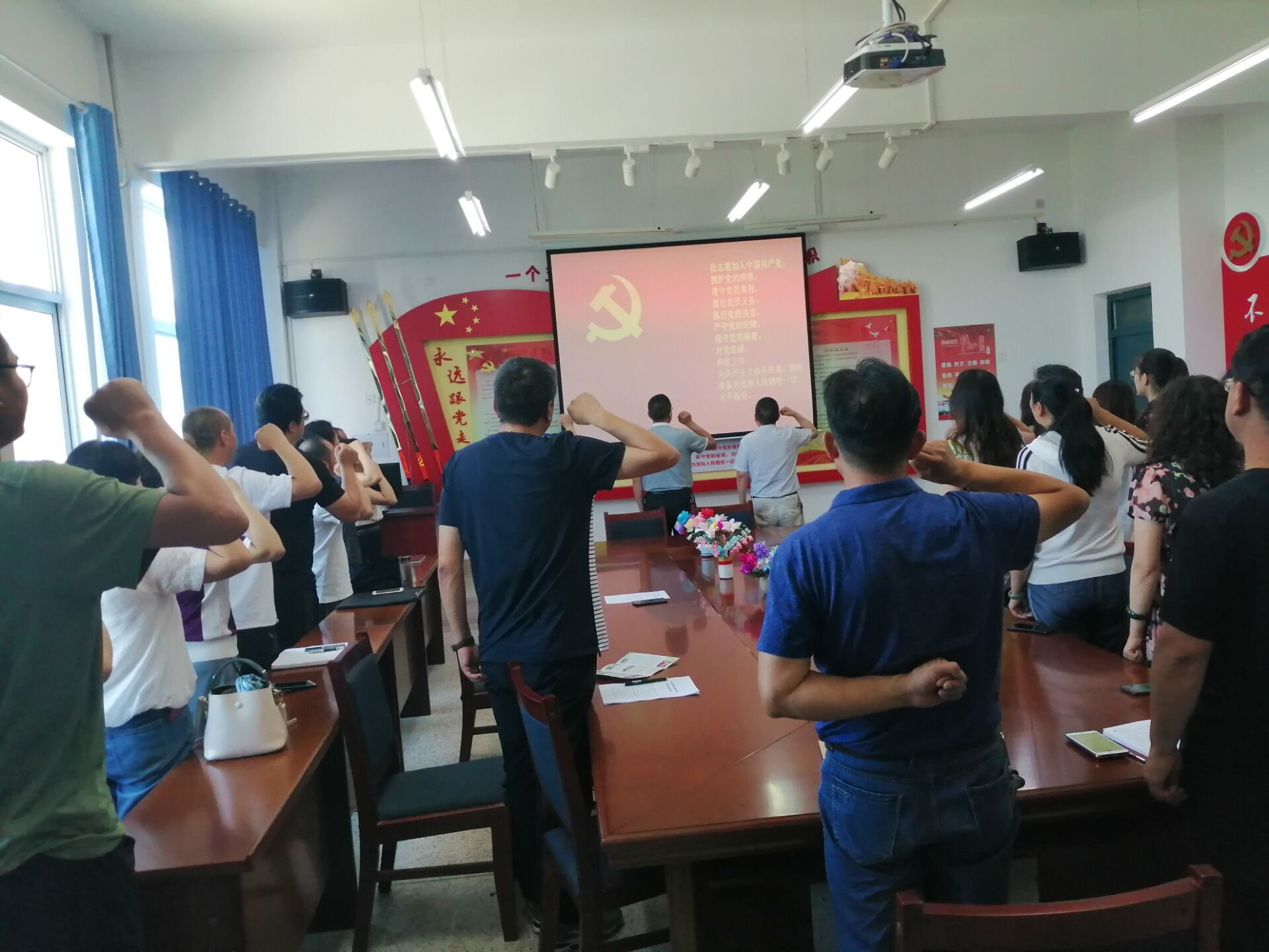 黨總支書記胡靜峰宣讀了中國共產(chǎn)黨預(yù)備黨員名單。在胡靜峰同志帶領(lǐng)下預(yù)備黨員面向黨旗進(jìn)行了入黨宣誓,其他黨員重溫了入黨誓詞。預(yù)備黨員劉心代表預(yù)備黨員進(jìn)行了表態(tài)發(fā)言。