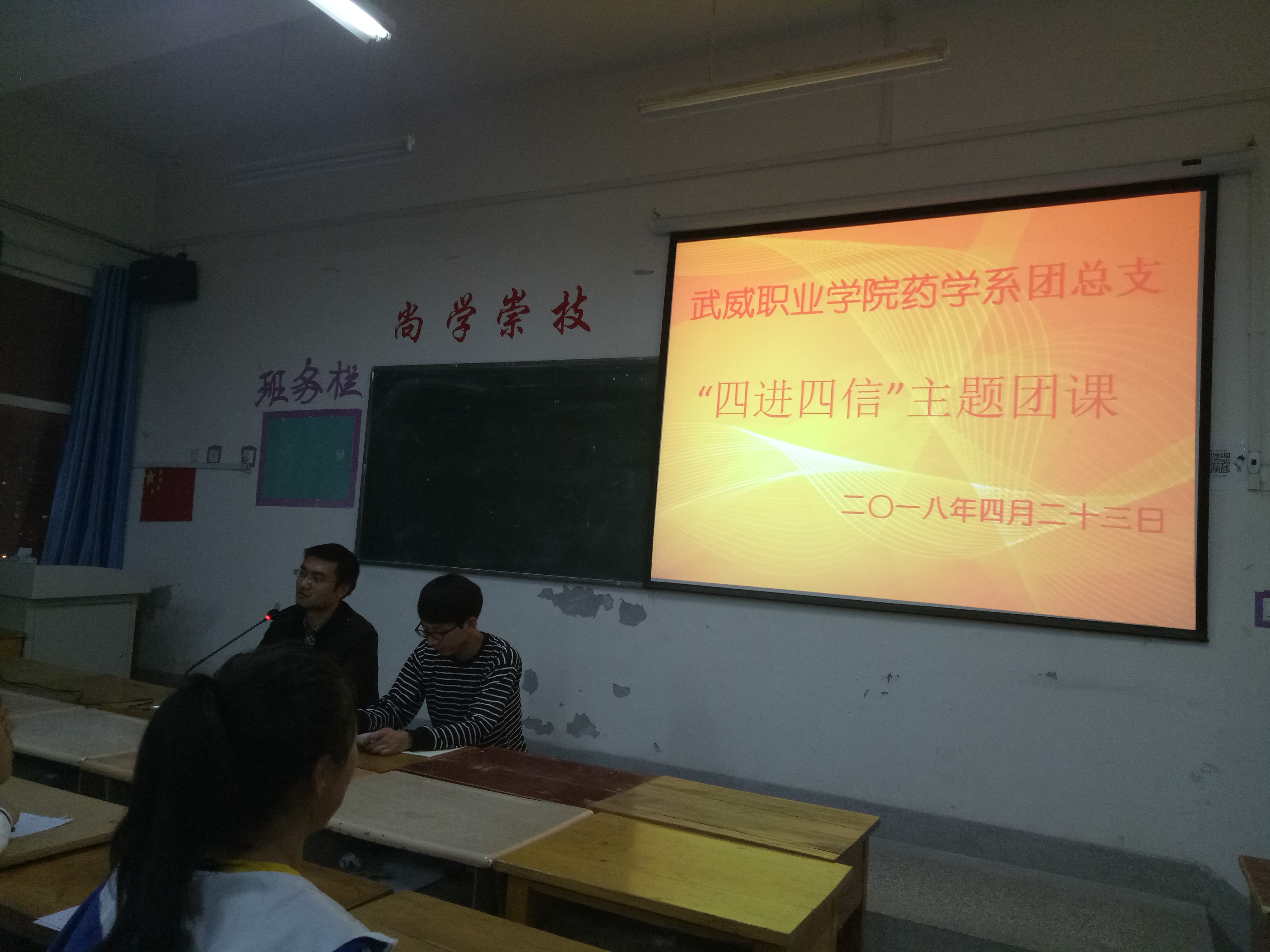 為深入學習宣傳貫徹習近平新時代中國特色社會主義思想,堅持以習近平新時代中國特色社會主義思想武裝團員干部和團員青年學生頭腦,積極推進各項工作開展。2018年4月23日晚,藥學系團總支組織16級團員青年及17級入團積極分子在明遠樓501教室開展關于“四進四信”的主題團課活動,團課由系團總支書記陳輝生主持。