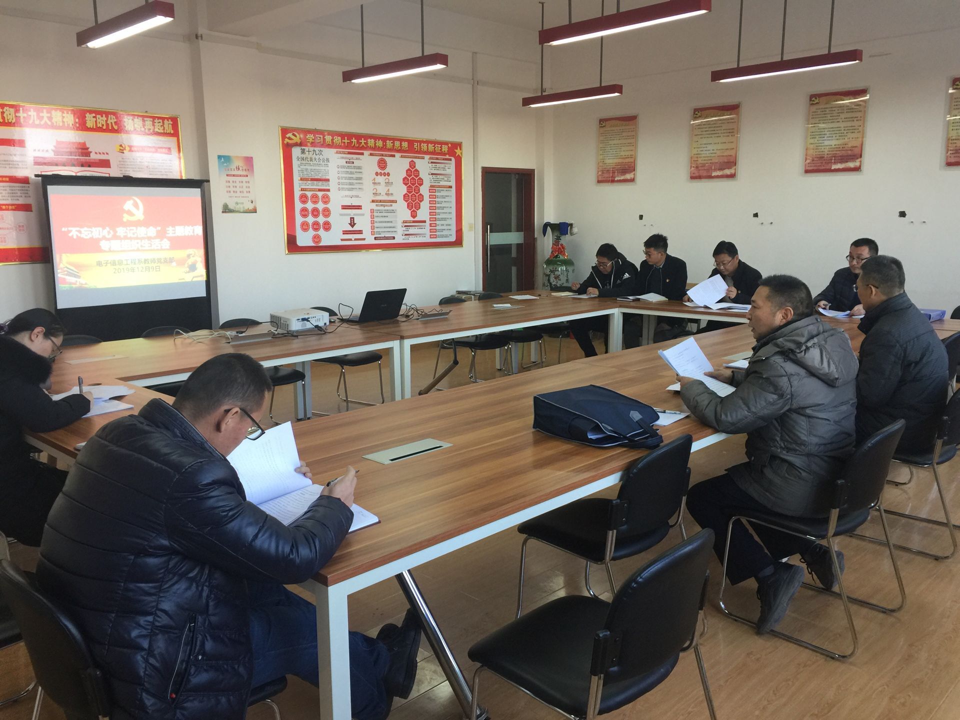 12月9日,電子信息工程系教師黨支部召開(kāi)“不忘初心、牢記使命”主題教育專(zhuān)題組織生活會(huì),會(huì)議由支部書(shū)記袁青年同志主持,全體黨員參加會(huì)議。