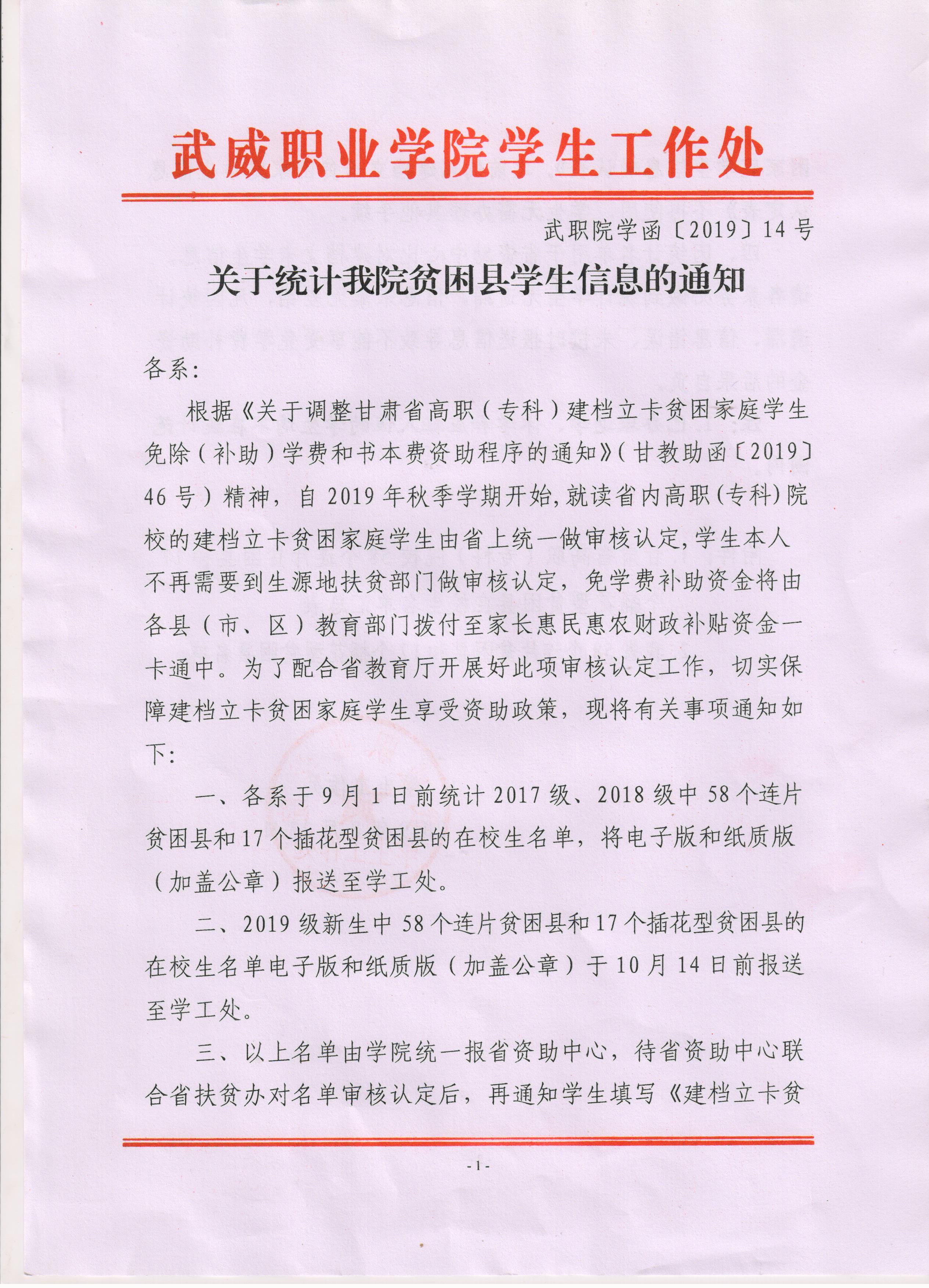 關(guān)于統(tǒng)計(jì)我院貧困縣學(xué)生信息的通知
