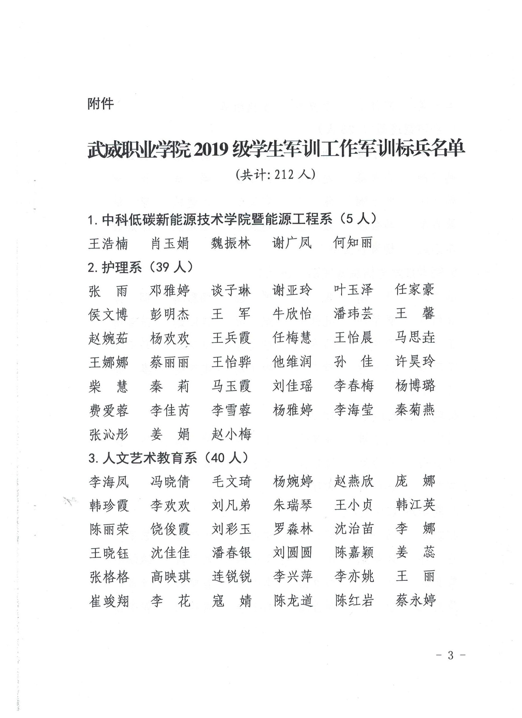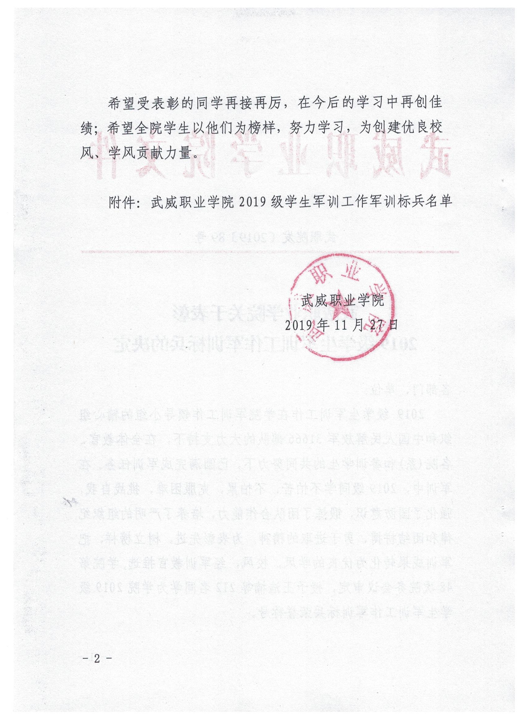 武威職業(yè)學(xué)院關(guān)于表彰2019級學(xué)生軍訓(xùn)工作軍訓(xùn)標(biāo)兵的決定