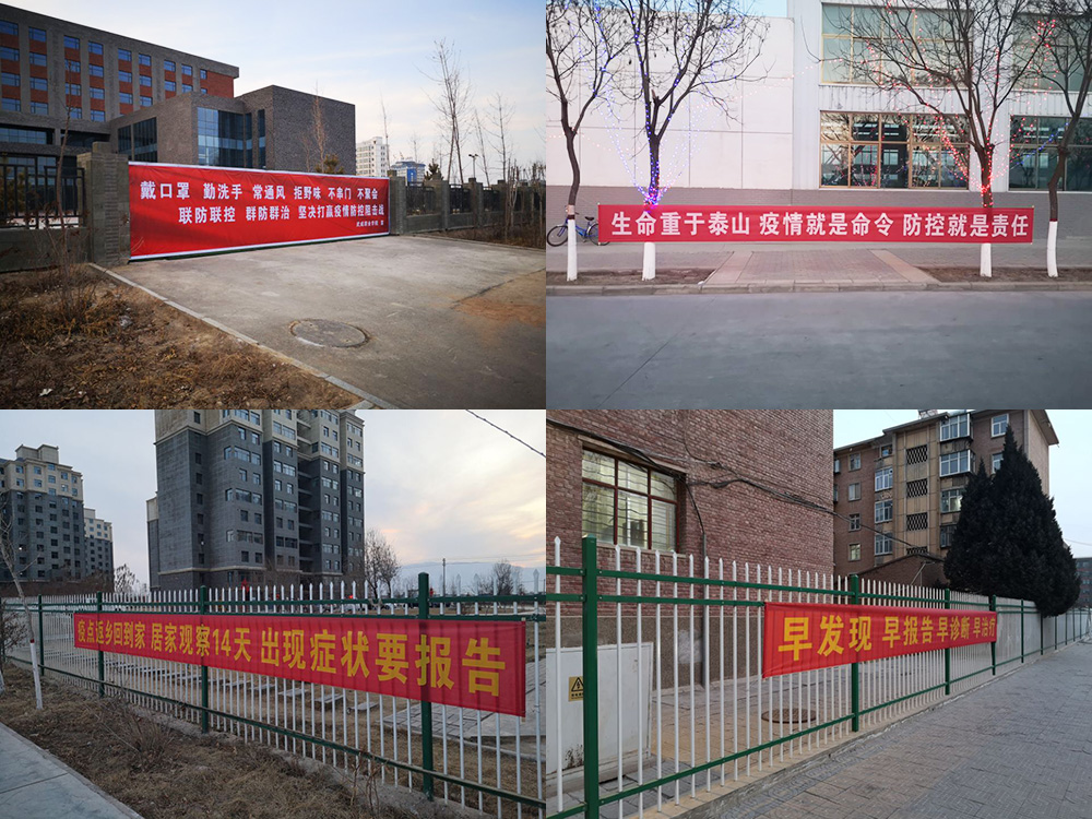 學(xué)院面向師生和社會(huì)人員,加強(qiáng)疫情防控內(nèi)外宣傳。在校園圍墻醒目位置設(shè)置內(nèi)容為:“戴口罩、勤洗手、常通風(fēng)、拒野味、不串門、不聚會(huì)”,“聯(lián)防聯(lián)控、群防群治、堅(jiān)決打贏疫情防控阻擊戰(zhàn)”等宣傳標(biāo)語(yǔ);在校園內(nèi)、家屬區(qū)等地顯著位置設(shè)置:“生命重于泰山、疫情就是命令、防控就是責(zé)任”,“重科學(xué)、聽官宣、不信謠、不傳謠”,“疫點(diǎn)返鄉(xiāng)回到家、居家觀察14天、出現(xiàn)癥狀要報(bào)告”,“早發(fā)現(xiàn)、早報(bào)告、早診斷、早治療”等宣傳標(biāo)語(yǔ)、橫幅。通過線上線下、校內(nèi)校外全方位教育、宣傳、號(hào)召、引導(dǎo),營(yíng)造了師生和社會(huì)人員高度重視、科學(xué)嚴(yán)謹(jǐn)、從我做起、同舟共濟(jì)嚴(yán)格防控疫情的濃厚氛圍和戰(zhàn)勝疫情的堅(jiān)定信心,為早日打贏疫情防控戰(zhàn)凝聚了共識(shí)、匯聚了強(qiáng)大的精神力量。