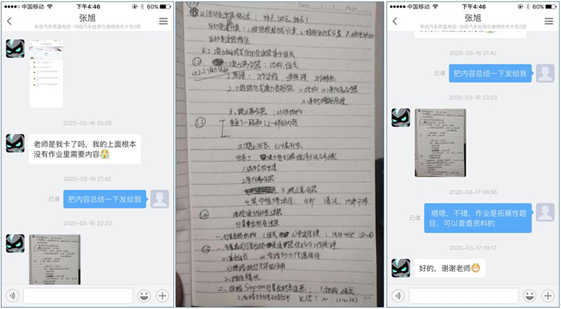 現(xiàn)代農(nóng)業(yè)技術(shù)系和汽車工程系的幾位學(xué)生春節(jié)前外出打工時(shí),因疫情爆發(fā)未能及時(shí)返回,被滯留當(dāng)?shù)?。疫情緩和后企業(yè)復(fù)工,學(xué)生為了能按時(shí)參加在線學(xué)習(xí),努力克服了時(shí)間不足、上網(wǎng)不便、網(wǎng)絡(luò)卡頓等諸多問(wèn)題,白天工作、晚上學(xué)習(xí),刻苦的身影令人動(dòng)容。