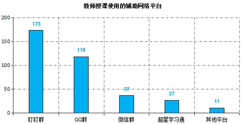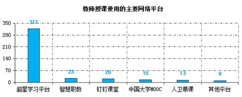 截止3月6日,教師使用武威職業(yè)學(xué)院在線教學(xué)平臺(tái)建設(shè)在線課程226門,使用超星學(xué)習(xí)通開展教學(xué)317次,釘釘課堂30次,智慧職教23次,中國(guó)大學(xué)MOOC15次,人衛(wèi)慕課13次,其他平臺(tái)9次。任課教師還選用釘釘群、QQ群或微信群等作為課程輔助交流平臺(tái)實(shí)施教學(xué)組織與管理。在線教學(xué)過程中,除開始時(shí)部分時(shí)段因同時(shí)在線人數(shù)過多導(dǎo)致網(wǎng)絡(luò)波動(dòng)外,其他時(shí)間教學(xué)平臺(tái)均能穩(wěn)定運(yùn)行,較好的保障了在線教學(xué)的順利實(shí)施。