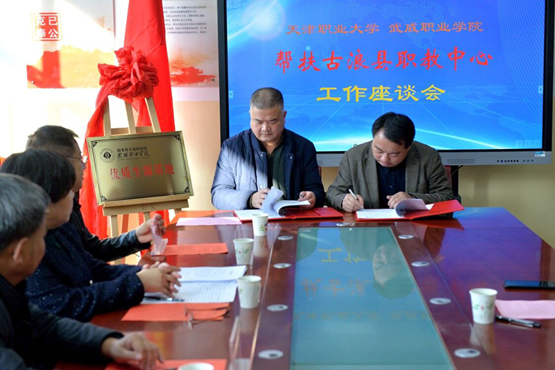 對接會上,趙明為古浪職教中心頒授“優(yōu)質(zhì)生源基地”牌匾,簡要介紹了學(xué)院近年來取得的重要辦學(xué)成果。他表示,學(xué)院今年顯著加強了同古浪職教中心的合作力度,今后還要擴大合作培養(yǎng)專業(yè),全方位深化合作關(guān)系,共同培養(yǎng)職業(yè)技能人才。他強調(diào),通過兩校的合作辦學(xué),我們要取長補短,促進中高職貫通培養(yǎng)大力發(fā)展。會上,王守云同古浪職教中心校領(lǐng)導(dǎo)簽署了“2020年中高職貫通培養(yǎng)辦學(xué)合作協(xié)議”。