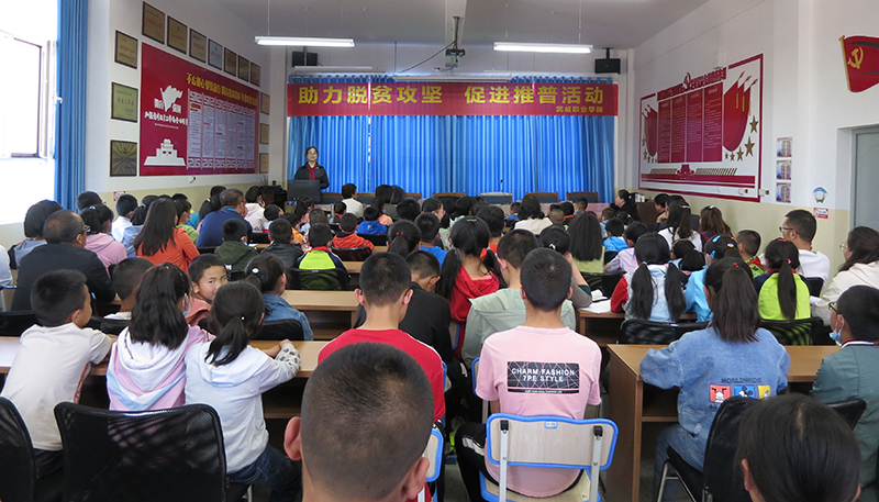趙穎老師為古浪縣黑松驛學(xué)校做了規(guī)范使用國(guó)家通用語(yǔ)言文字講座。講座中趙老師從黑松驛鎮(zhèn)脫貧致富實(shí)際需求的角度談了規(guī)范使用國(guó)家通用語(yǔ)言文字的重要性,向黑松驛全校師生分享了規(guī)范使用普通話的教學(xué)方法和學(xué)習(xí)技巧,鼓勵(lì)同學(xué)們積極使用普通話,養(yǎng)成良好的語(yǔ)言習(xí)慣。