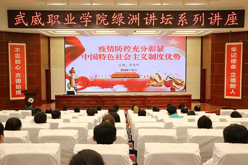 6月9日,武威職業(yè)學院“綠洲講壇”第33期在學院菁英廳舉行,學院黨委副書記翟存祥教授作了題為《疫情防控充分彰顯中國特色社會主義制度優(yōu)勢》的講座。中科低碳新能源技術學院師生代表共150余人參加了報告會。
