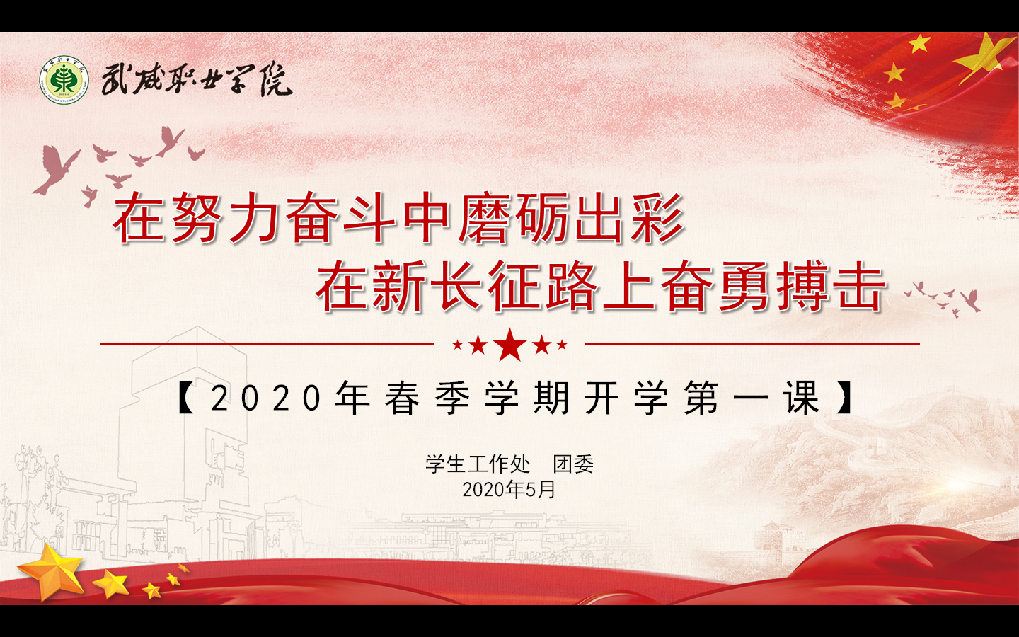 ? ? ? 通過同上“開學(xué)第一課”,引導(dǎo)學(xué)生對黨和國家在本次疫情當(dāng)中做出的果斷決策,以及廣大醫(yī)務(wù)工作者和其他各條戰(zhàn)線的工作人員所做出的努力進(jìn)行了回顧。對于疫情防控的相關(guān)知識,包括個人衛(wèi)生消毒,個人防護(hù)等工作進(jìn)行了知識普及。對學(xué)院封閉式管理期間的各項規(guī)章制度以及教學(xué)秩序等工作進(jìn)行安排部署。對于封閉式管理期間學(xué)生的心理健康以及自我調(diào)試進(jìn)行了簡單的指導(dǎo)。