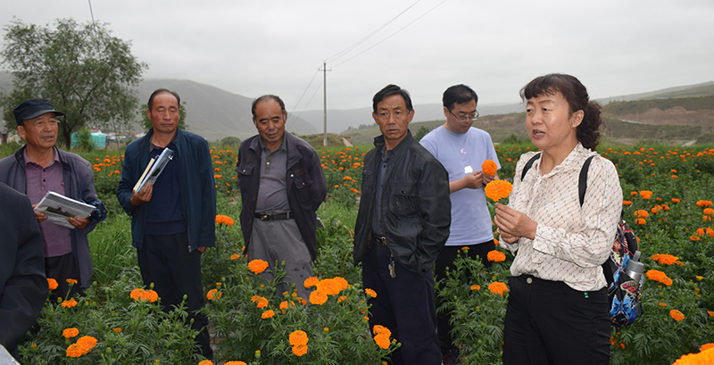 座談會結(jié)束后,銀春花副教授做了題為“花海花卉選擇”的專題講座,就花海品種的選擇及種植養(yǎng)護(hù)的關(guān)鍵問題做了詳細(xì)的講解,參加培訓(xùn)的人員紛紛表示,收獲頗豐,為今后黑松驛鎮(zhèn)的在美化環(huán)境,花海建設(shè)中提供了依據(jù)。銀春花還在花海現(xiàn)場指導(dǎo)農(nóng)戶開展了花卉的田間管理及病蟲害防治。