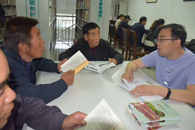 “扶貧先扶智”,晏素珍帶領(lǐng)黨員教師為黑松驛鎮(zhèn)的農(nóng)戶贈送了種植養(yǎng)殖及產(chǎn)業(yè)扶貧結(jié)合密切的圖書,之后來到了圖書閱覽室共同交流研討種植養(yǎng)殖的技術(shù)問題,同時還召開了座談會,就農(nóng)戶急需解決的問題進(jìn)行了詳細(xì)的講解。