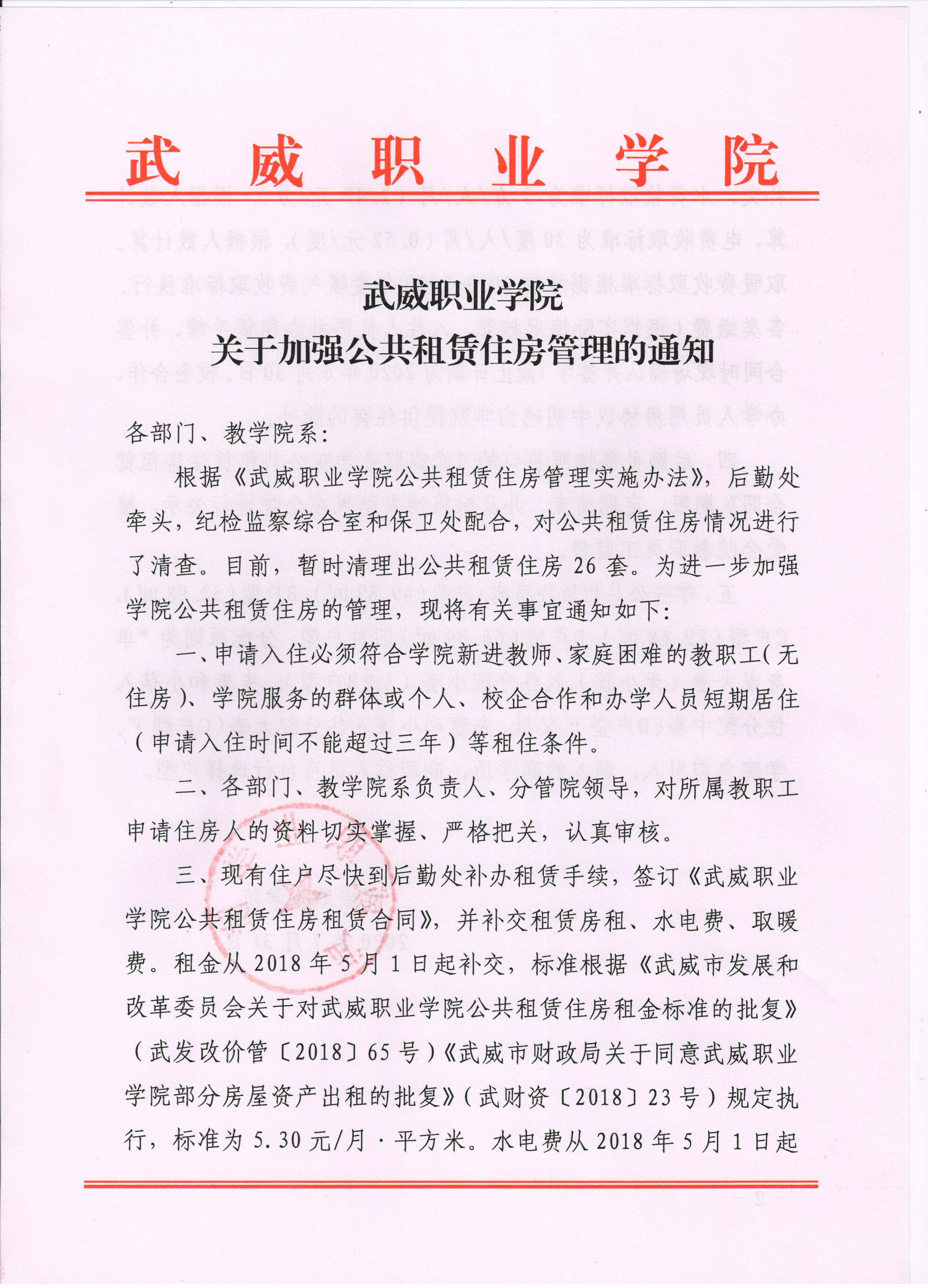 《武威職業(yè)學(xué)院關(guān)于加強(qiáng)公共租賃住房管理的通知》
