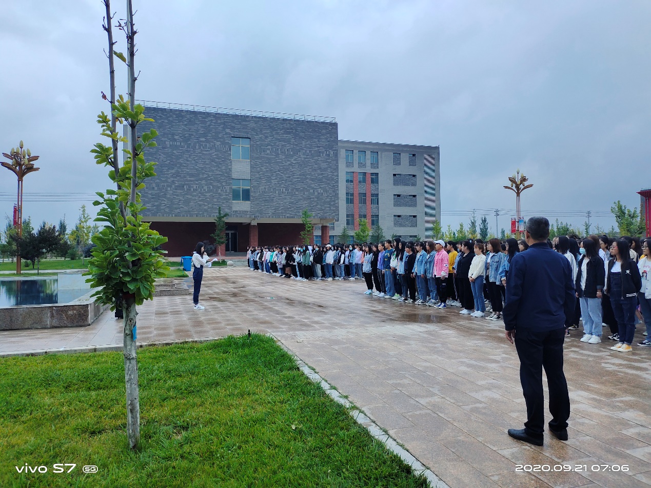 最后,魏潤明以“秋冬季節(jié),加強疫情防護”為題做了講話。他要求全體師生:一、嚴格日常管理。提醒學生早起以增強身體素質、健康體魄,要重視自身健康素養(yǎng)和自我防護能力。二、嚴格執(zhí)行請銷假制度。各班主任對請假學生,須認真核實情況,各班同學應嚴格執(zhí)行請銷假制度。同時,他告誡2018級學生,抓住有利時機,提前做好“專升本”復習工作,為圓滿完成2021屆畢業(yè)生就業(yè)工作,做好準備。