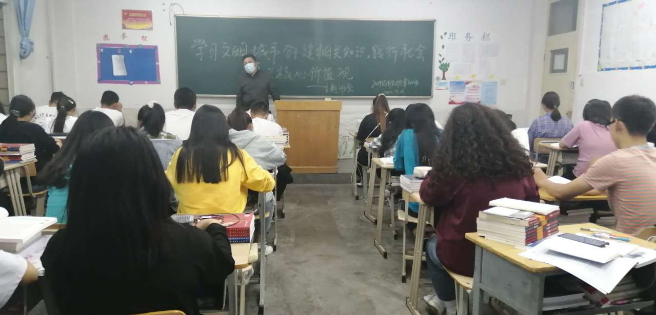 ?為深入學(xué)習(xí)習(xí)近平新時(shí)代中國(guó)特色社會(huì)主義思想和黨的十九大、十九屆四中全會(huì)精神,堅(jiān)決落實(shí)學(xué)院關(guān)于文明校園和文明城市創(chuàng)建的各項(xiàng)安排部署,深入推進(jìn)制止餐飲浪費(fèi)行為系列活動(dòng),團(tuán)結(jié)引領(lǐng)我系師生積極踐行社會(huì)主義核心價(jià)值觀,樹(shù)立文明和諧新風(fēng)尚。醫(yī)學(xué)技術(shù)與信息管理系各教學(xué)班于2020年9月15日開(kāi)展了“樹(shù)立文明新風(fēng)尚,踐行社會(huì)主義核心價(jià)值觀”主題班會(huì)教育活動(dòng)。