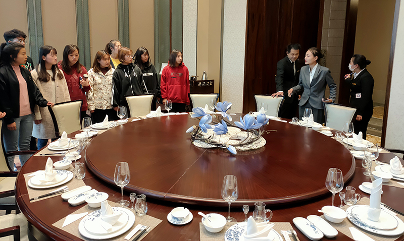 最后,姚盈老師對藍海御華大飯店提供的參觀機會和熱心招待表示感謝,并對此次參觀學習做了總結;他表明作為學姐,羅列列能夠晉升為總監(jiān),這種成功正是得益于她堅持不懈的精神、扎實的專業(yè)理論以及高超的專業(yè)技能,并由此告訴同學們要敢于走進企業(yè),將所學課程運用到實踐當中,在學生時代就要培養(yǎng)自己堅強的毅力以及非凡的能力,只有這樣,才能在工作中以不變應萬變,成長為能夠服務社會的優(yōu)秀青年!