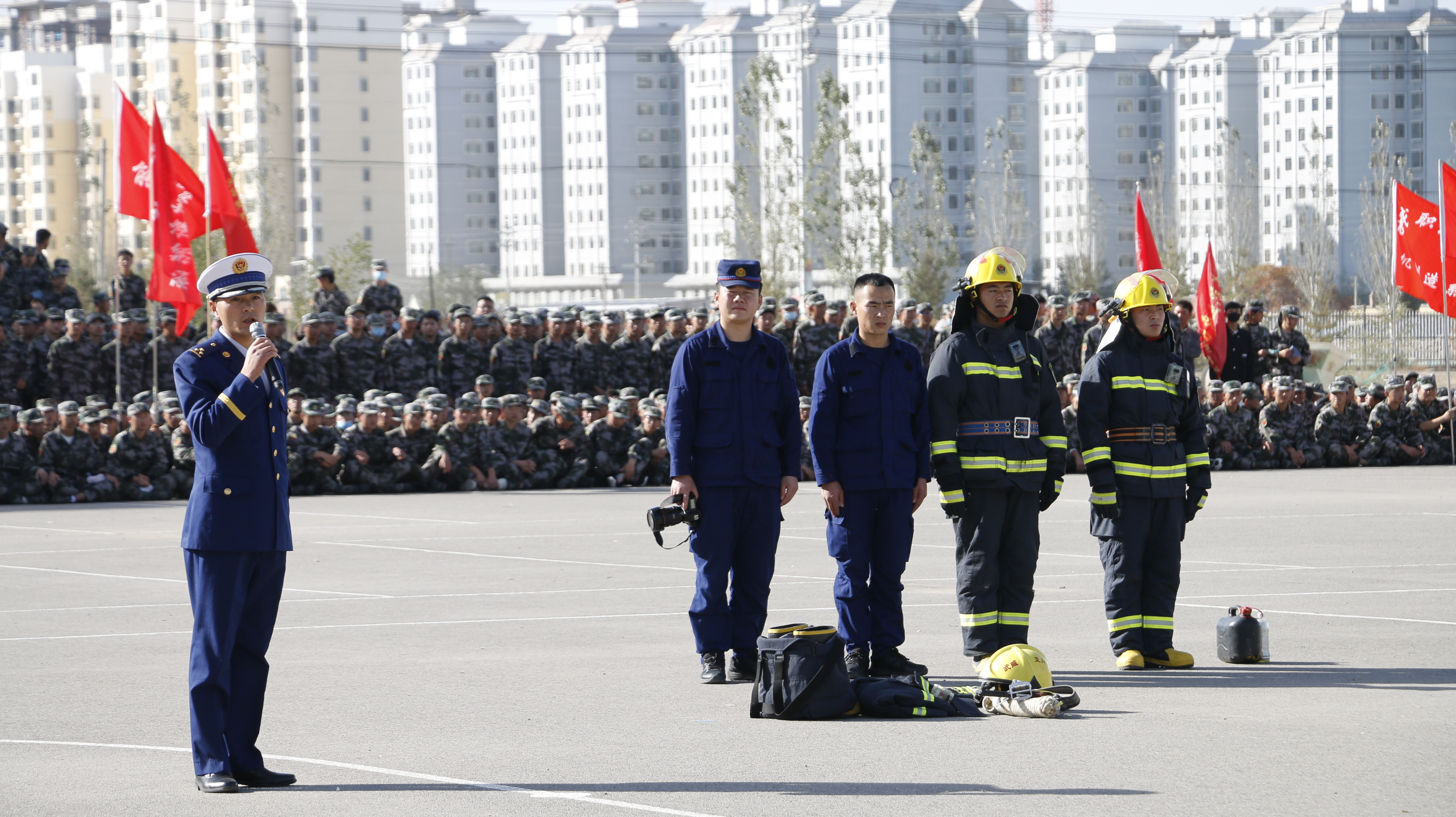 10月21日下午,學院聯(lián)合涼州區(qū)消防救援中隊舉行了2020年消防應急疏散和滅火演練活動。學院副院長張開禮、涼州區(qū)消防救援中隊指導員李躍興出席活動,保衛(wèi)處、學生工作處、各教學院系負責同志現(xiàn)場觀摩演練,約4300多名2020級新生參加了演練?。