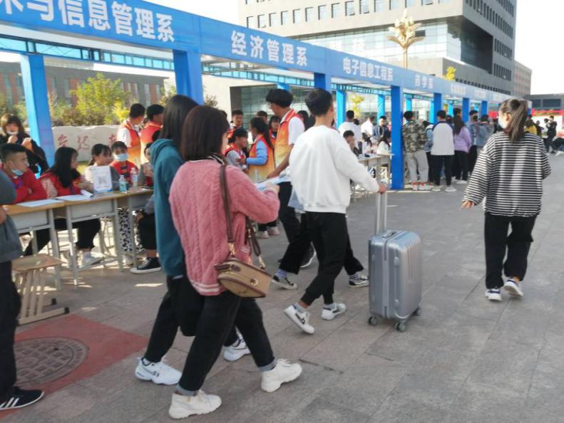 新生報(bào)到注冊(cè)在學(xué)院東門(mén)口進(jìn)行,為了新生順利完成報(bào)到注冊(cè),學(xué)院在火車(chē)站、汽車(chē)站分別設(shè)立了接待點(diǎn),每一趟車(chē)到站,新生及家長(zhǎng)一下車(chē),眾多的迎新志愿者們帶領(lǐng)他們來(lái)到報(bào)到點(diǎn),校門(mén)口還有我們的廣播員,提醒新生帶好隨身物品,學(xué)院還設(shè)置了家長(zhǎng)休息區(qū),綠色通道,來(lái)到報(bào)到點(diǎn)還設(shè)有釘釘掃碼簽到,報(bào)到登記處、收費(fèi)處,各項(xiàng)工作有序開(kāi)展。每個(gè)環(huán)節(jié)均有各系志愿者熱情引導(dǎo),悉心服務(wù),為新生及家長(zhǎng)提供新生報(bào)到和問(wèn)題解答的服務(wù)。迎新工作如火如荼,到處都是忙碌的身影。院團(tuán)委學(xué)生會(huì)以及各系團(tuán)學(xué)會(huì)的學(xué)長(zhǎng)學(xué)姐們不厭其煩地為新生、家長(zhǎng)回答著他們提出的各種問(wèn)題。還幫學(xué)弟學(xué)妹們拎行李,一路談笑風(fēng)生,帶領(lǐng)她們領(lǐng)取床鋪、飯卡,辦理入住等一系列手續(xù),人頭攢動(dòng),秩序井然。