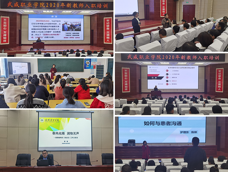 集中培訓(xùn)分為名師講堂、職業(yè)解碼、教學(xué)示范課和職業(yè)拓展四個模塊,分別邀請了學(xué)院黨委副書記、思政名師工作室主持人翟存祥、能源工程系負責人胡建宏、創(chuàng)新創(chuàng)業(yè)中心負責人顏魯薪、學(xué)工處教師付成榮、護理系教師趙穎和陳琳、現(xiàn)代農(nóng)業(yè)技術(shù)系教師蔡海作了精彩而又生動的報告。報告以《育師德、樹師風、鑄師魂,努力打造師德高尚的新時代教師隊伍——從教師職業(yè)素養(yǎng)說起》《高校教學(xué)活動一般原理與實踐問題》《基本的教學(xué)設(shè)計文檔》《立足崗位勇?lián)?扎根西涼育工匠——從青椒到骨干》《提高教學(xué)效率的有效方法》《如何與患者溝通》《春風化雨潤物無聲——高職輔導(dǎo)員(班主任)工作之我見》為主題,使新教師對教師職業(yè)素養(yǎng)、師德師風、教育教學(xué)改革、人才培養(yǎng)模式、創(chuàng)新創(chuàng)業(yè)、課堂教學(xué)及班主任工作有了全新的認識。