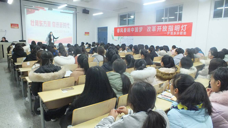 5月份在全院舉辦了“我與改革開放共成長”為主題的征文活動,鼓勵青年學(xué)生寫身邊生活的變化,講改革開放的故事,談民族的偉大復(fù)興,感黨恩情,熱愛祖國,筑夢未來,共收集各系推選作品90份,評選出了33份優(yōu)秀作品并在學(xué)院團(tuán)青平臺進(jìn)行了選登。12月初全院各團(tuán)支部緊緊圍繞“我與改革開放共成長”這一主題,開展形式多樣、線上線下主題團(tuán)日活動,增強(qiáng)了同學(xué)的愛國熱情,激發(fā)同學(xué)的民族自尊心和自豪感。12月18日組織青年學(xué)生代表觀看慶祝改革開放40周年大會的直播。