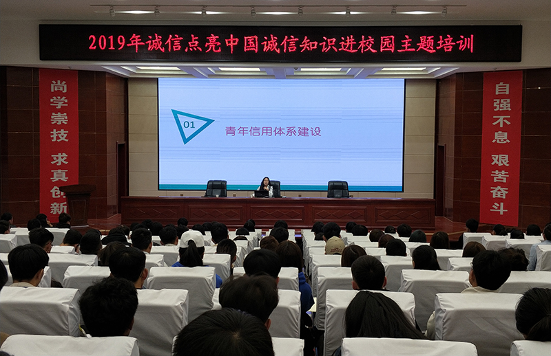 為進一步拓寬誠信知識宣傳的深度和廣度,提升我院青年學(xué)生的誠信意識,增強同學(xué)們信用理念和防范重大風(fēng)險的意識, 3月30日上午,2019年“誠信點亮中國”誠信知識進校園活動在菁英廳舉辦,團省委青年信用體系建設(shè)領(lǐng)導(dǎo)小組辦公室主任高振葉作了《青年信用體系建設(shè)與志愿中國》主題講座,團市委少工委副主任許娜出席活動,院團委教師和220學(xué)生代表參加了培訓(xùn)。