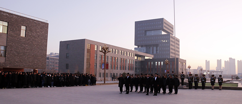 上午7時50分,國旗班踏著鏗鏘有力的步伐步入升旗臺,鮮紅的五星紅旗在雄壯的國歌聲中冉冉升起。警笛鳴響,在場師生肅立,為遇難同胞默哀致敬。26名學(xué)生代表深情朗誦《和平宣言》,代表學(xué)院全體師生發(fā)出莊嚴的和平宣言。
