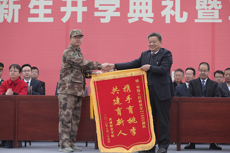 黨委書(shū)記、院長(zhǎng)趙明向承訓(xùn)部隊(duì)贈(zèng)送錦旗