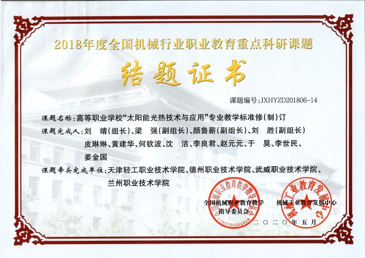 “太陽(yáng)能光熱技術(shù)與應(yīng)用”專(zhuān)業(yè)國(guó)家教學(xué)標(biāo)準(zhǔn)通過(guò)專(zhuān)家評(píng)審