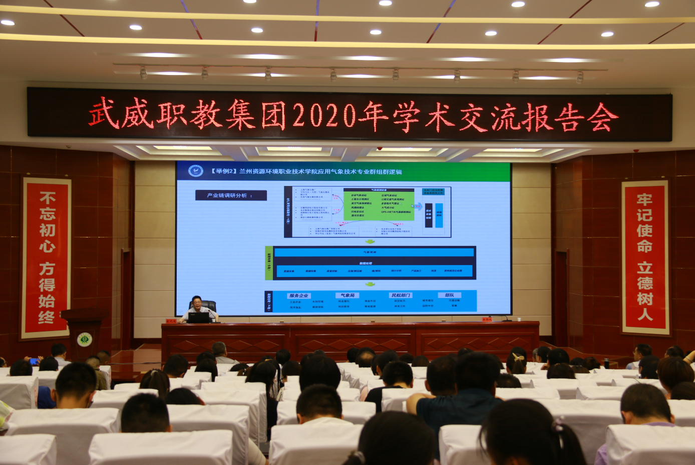 7月11日上午,學(xué)院在大學(xué)生活動中心菁英廳舉辦“第35期綠洲講壇暨雙高專業(yè)群建設(shè)專題講座”,邀請到蘭州資源環(huán)境職業(yè)技術(shù)學(xué)院黨委委員、副院長宋元文教授作“基于專業(yè)群發(fā)展的新時代高職院校建設(shè)”的專題報(bào)告。學(xué)院黨委書記、院長趙明主持報(bào)告會,黨委副書記翟存祥,黨委委員、副院長田迎春、何毅、張開禮、王守云,武威職教集團(tuán)成員單位代表,學(xué)院各部門和教學(xué)院系負(fù)責(zé)人、專業(yè)負(fù)責(zé)人和教師代表共計(jì)200余人參加了報(bào)告會。