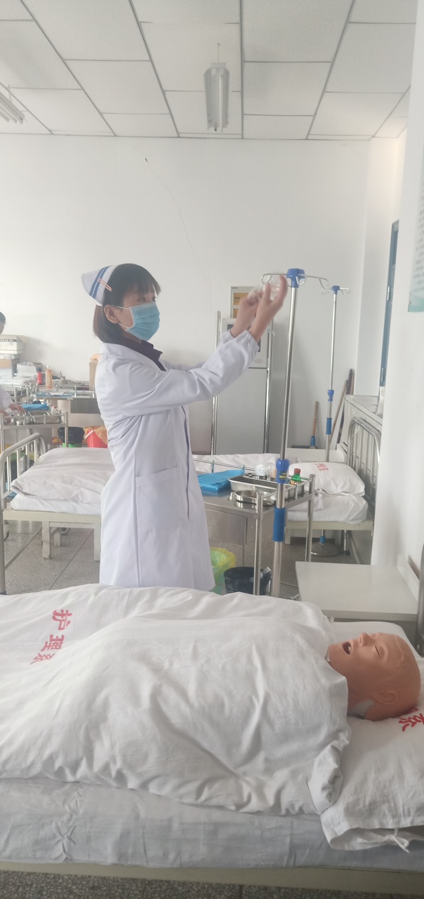 實驗指導(dǎo)教師進行密閉式靜脈輸液操作
