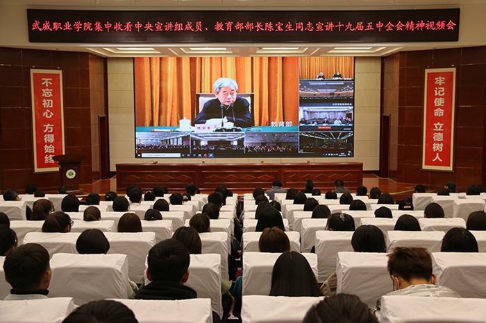 武威職業(yè)學(xué)院組織黨員干部和師生觀看教育部黨組書(shū)記、部長(zhǎng)陳寶生宣講十九屆五中全會(huì)精神