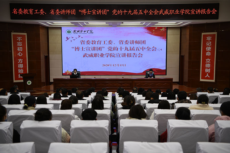 學(xué)院舉辦“省委教育工委、省委講師團(tuán)‘博士宣講團(tuán)’黨的十九屆五中全會武威職業(yè)學(xué)院宣講報告會”