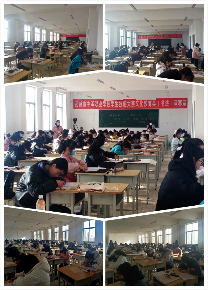 2020年12月18日,武威市中等職業(yè)學(xué)校技能大賽文化教育類書法賽項在武威職業(yè)學(xué)院知行樓301,303舉行,來自全市中等職業(yè)學(xué)校141名選手報名參加了本次競賽。