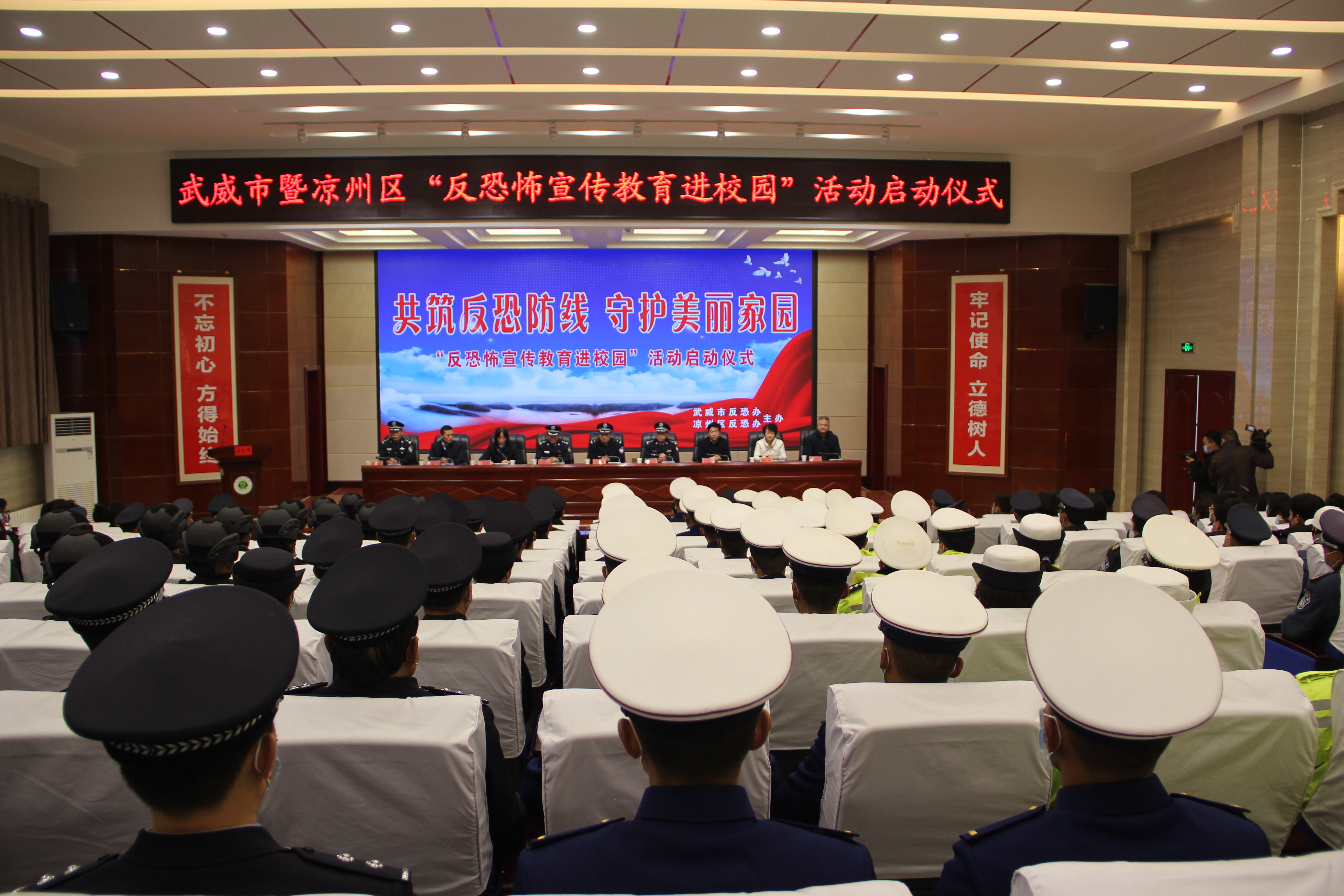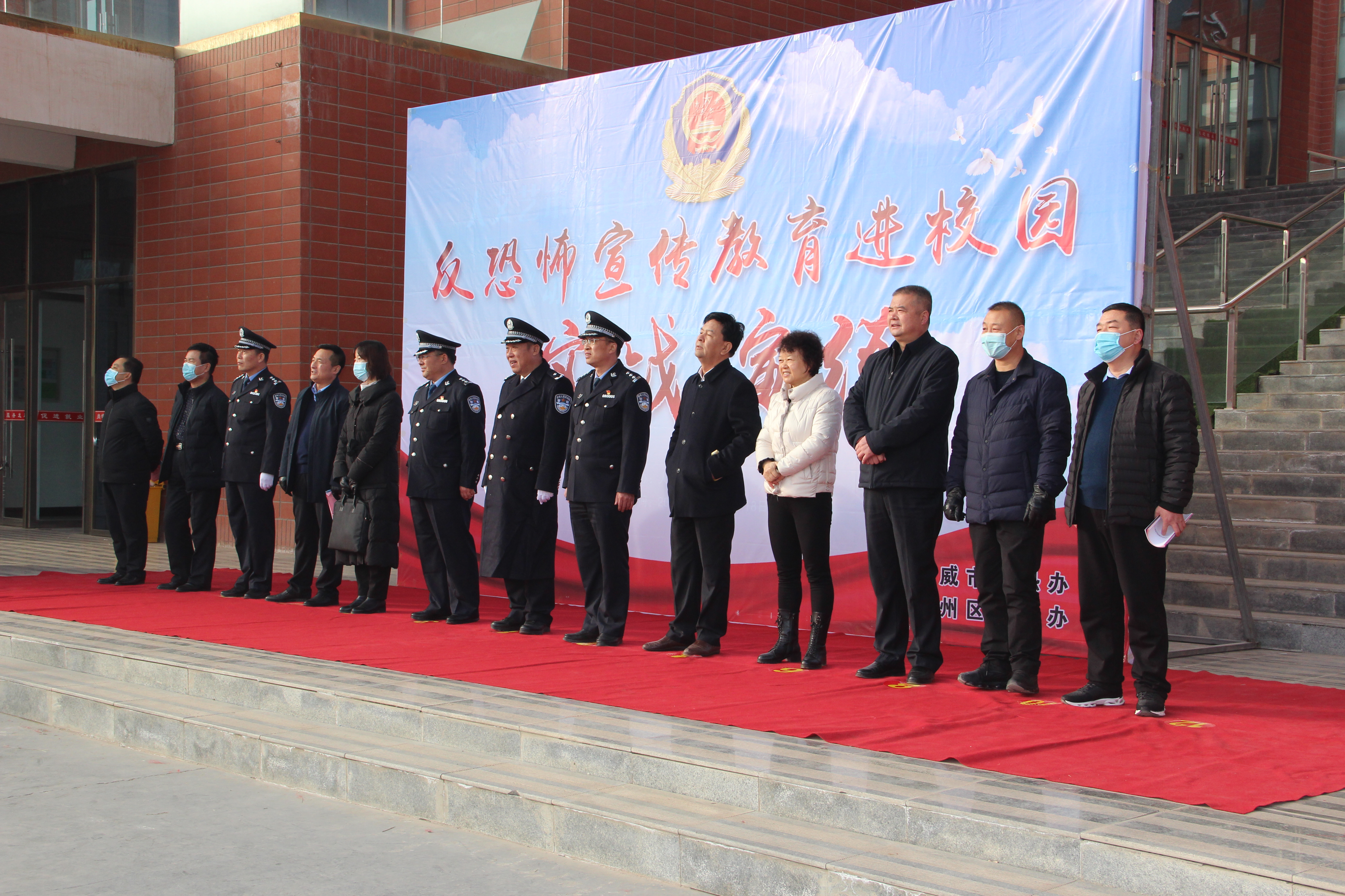 啟動儀式在雄壯的國歌聲中開始。武威市反恐怖辦主任、市公安局常務(wù)副局長康威同志致辭并宣布“反恐怖宣傳教育進(jìn)校園”活動啟動;市教育局副局長賈玉玲同志代表全市教育系統(tǒng)作了講話;學(xué)院學(xué)生代表王昊宣讀了倡議書。